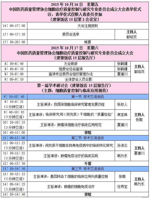 由中國醫(yī)藥質(zhì)量管理協(xié)會細胞治療質(zhì)量控制與研究專業(yè)委員會(籌)主辦、中山大學附屬腫瘤醫(yī)院、鄭州大學一附院、拜西歐斯(北京)生物技術有限公司聯(lián)合承辦的“中國醫(yī)藥質(zhì)量管理協(xié)會細胞治療質(zhì)量控制與研究專業(yè)委員會成立大會暨第一屆學術研討會”將于2015年10月16-17日在北京召開,成立大會將選舉產(chǎn)生第一屆委員代表和常務委員會委員,研討會將圍繞“細胞質(zhì)量控制與臨床應用規(guī)范”主題開展學術交流,屆時將邀請國內(nèi)外細胞治療領域(包括干細胞和免疫細胞)的專家學者就研討會主題作學術報告。本專業(yè)委員會是細胞治療質(zhì)量控制與研究領域學術交流的大平臺,將定期舉辦各種規(guī)模的學術交流會議,通過學術會議,以期達成行業(yè)共識,推動細胞制劑質(zhì)量控制標準體系的建立和相關政策出臺,使我國的細胞治療行業(yè)在規(guī)范化的基礎上健康有序發(fā)展。
