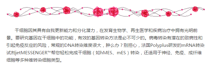 干細(xì)胞轉(zhuǎn)染福音,法國(guó)Polyplus的jetMESSENGER?您不容錯(cuò)過(guò)!
