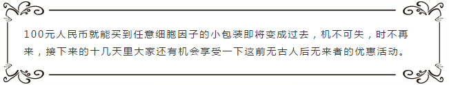 如何參加特惠活動,哈哈,我再叨叨最后一遍,第一步購買大包裝任意因子第二步備注我們的活動單號AC—2017即可享受100元就能買到SIZE A的細(xì)胞因子,只需要100元。