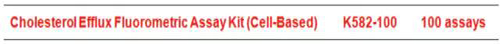 BioVision膽固醇外流檢測試劑盒Cholesterol Efflux Fluorometric Assay Kit (Cell-Based) cat#K582-100 是目前市售的唯一沒有毒性的膽固醇外流檢測試劑盒,其原理是利用熒光標(biāo)記膽固醇,以高通量檢測細胞中的膽固醇外流。