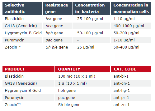 InvivoGen提供一系列細(xì)胞培養(yǎng)測(cè)試的抗生素以確保無(wú)假陰性篩選穩(wěn)轉(zhuǎn)哺乳動(dòng)物細(xì)胞株。這些抗生素?zé)o菌且無(wú)內(nèi)毒素污染以避免細(xì)菌內(nèi)毒素,也被稱為L(zhǎng)PS,對(duì)轉(zhuǎn)染細(xì)胞造成的有害影響。InvivoGen嚴(yán)格驗(yàn)證產(chǎn)品的物理化學(xué),通過(guò)微生物和細(xì)胞培養(yǎng)以確保其功能活性。所有出品的抗生素被證實(shí)對(duì)哺乳動(dòng)物細(xì)胞表現(xiàn)出長(zhǎng)期的穩(wěn)定性并且沒(méi)有細(xì)胞毒性。