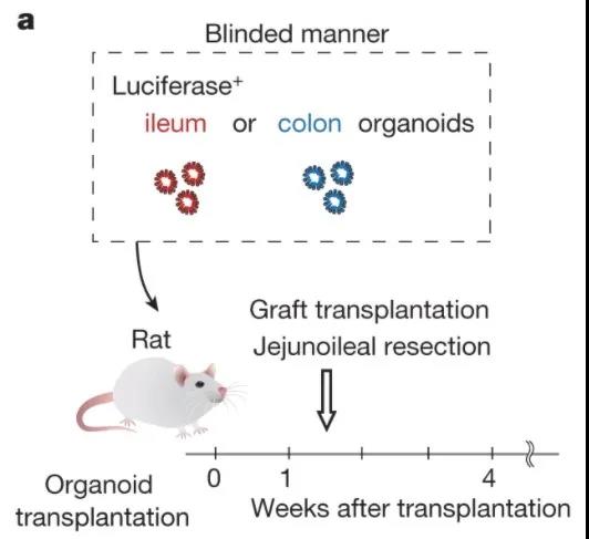以單盲的方式移植回腸或結(jié)腸類器官的實驗策略。